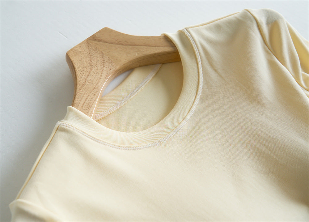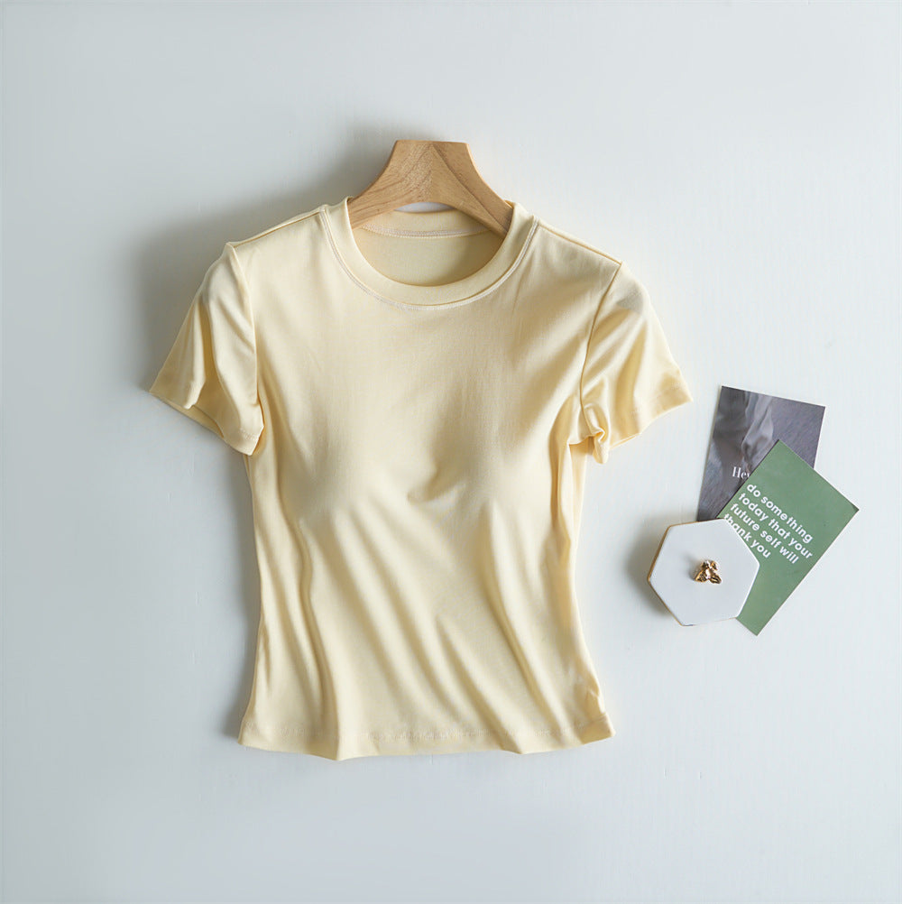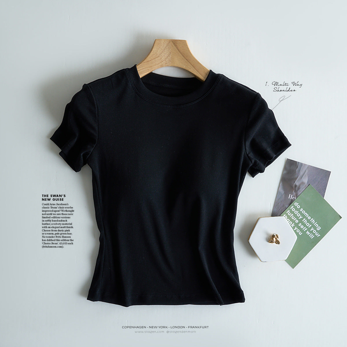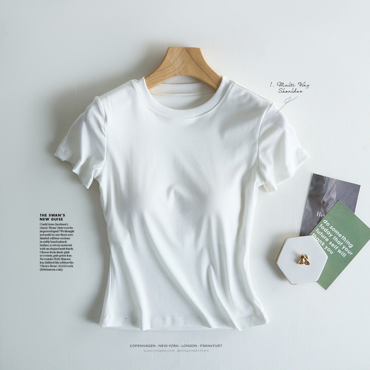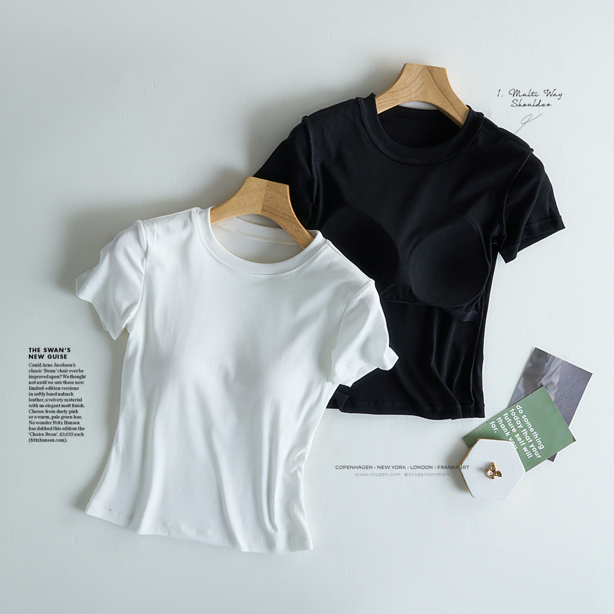 면스판 캡내장 배꼽덮는기장 기본핏 반팔 티셔츠 [패드고정]
