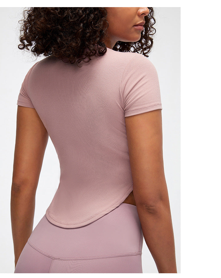라운드넥 골지니트 U라인밑단 캡내장 슬림핏 반팔 [패드탈착가능]